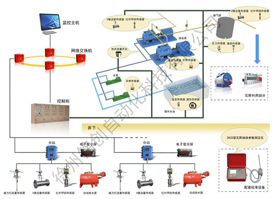對(duì)井上下抽采管道內(nèi)氣體的流量、溫度、壓力、甲烷濃度、一氧化碳濃度等進(jìn)行連續(xù)監(jiān)測(cè)。自動(dòng)計(jì)算管道瓦斯混合量及累計(jì)量、瓦斯純量及累計(jì)量,并能自動(dòng)記錄、查詢、打印各類數(shù)據(jù)和報(bào)表。采用流量傳感器、壓力傳感器等監(jiān)測(cè)管道參數(shù)。當(dāng)監(jiān)測(cè)點(diǎn)數(shù)據(jù)超過設(shè)定報(bào)警值時(shí),及時(shí)發(fā)出聲光警報(bào)信號(hào)。